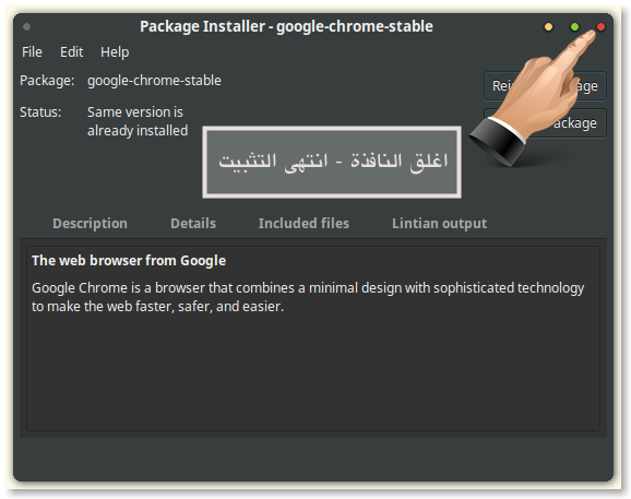 سنقوم بتثبيت البرنامج من خلال الحزمة deb